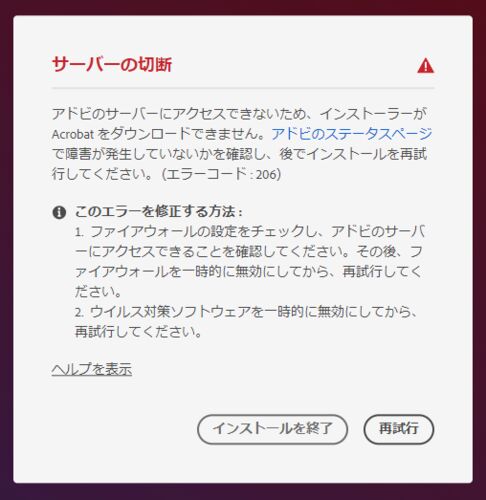 Adobe Acrobat Proをインストールしようとしたところ、インストールは成功したが、ユーザー名とパスワードを入れてログインしようとしたときに、画面がループして動かなくなる状態が発生した。具体的には サーバーの切断 アドビのサーバーにアクセスできない…